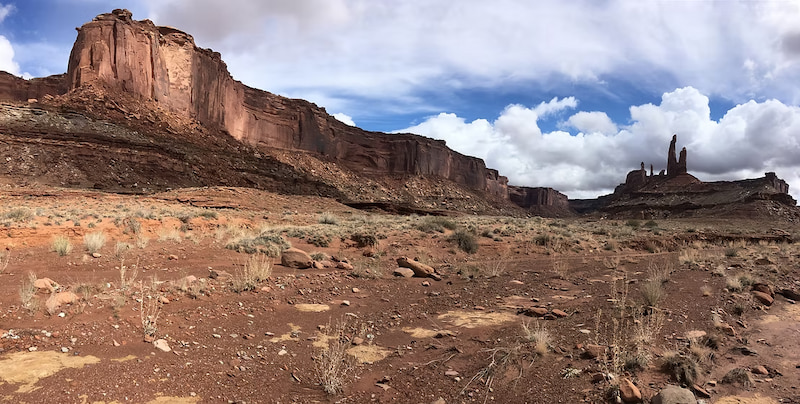 The high desert landscape of Canyonlands. The most predominant shrub seen here is rubber rabbitbrush (Chrysothamnus nauseosus)
