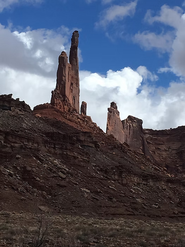 Moses and Zeus spires at the confluence of Trail and Taylor Canyons