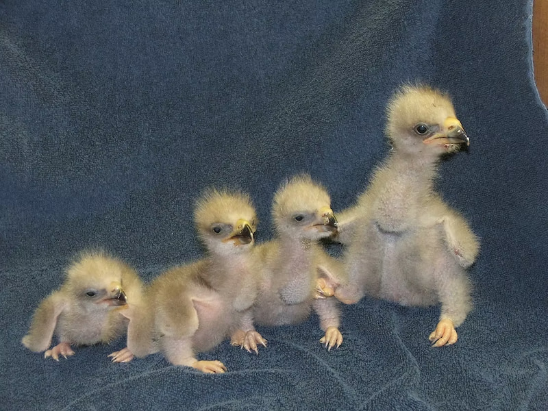 The eaglets are fed quail meat for four to five days, upon which point they are taken back to their natal nests. This amount of time is not long enough for the eaglets to physically imprint on their caretakers, so we did not need to use puppets when feeding