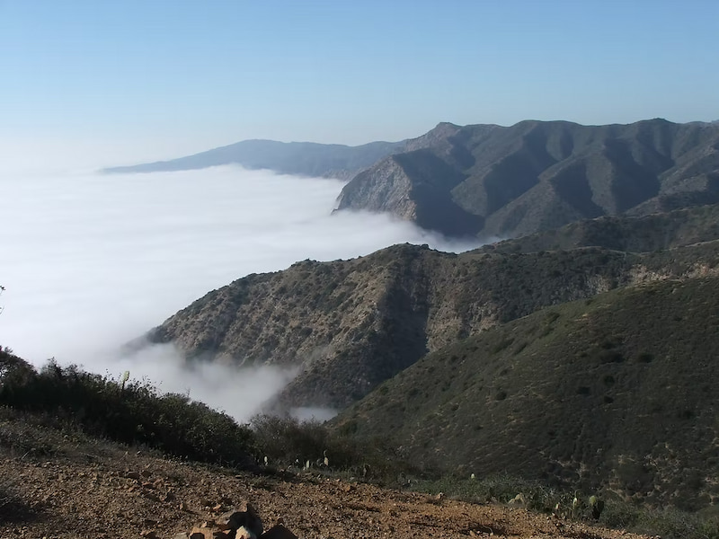 Fog would regularly blanket the ocean, obscuring it entirely from my view. In this photo, you can appreciate the island's dry, Mediterranean-like chaparral vegetation