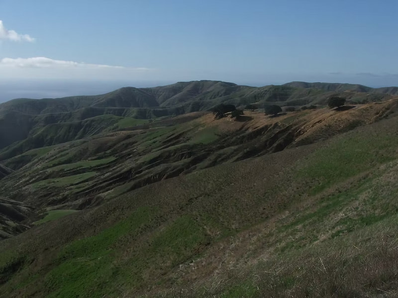 The eastern side of Santa Cruz Island looking west towards Anacapa Island. Notice the barren landscape. A lot of this is due to non-native species like fennel and feral pigs