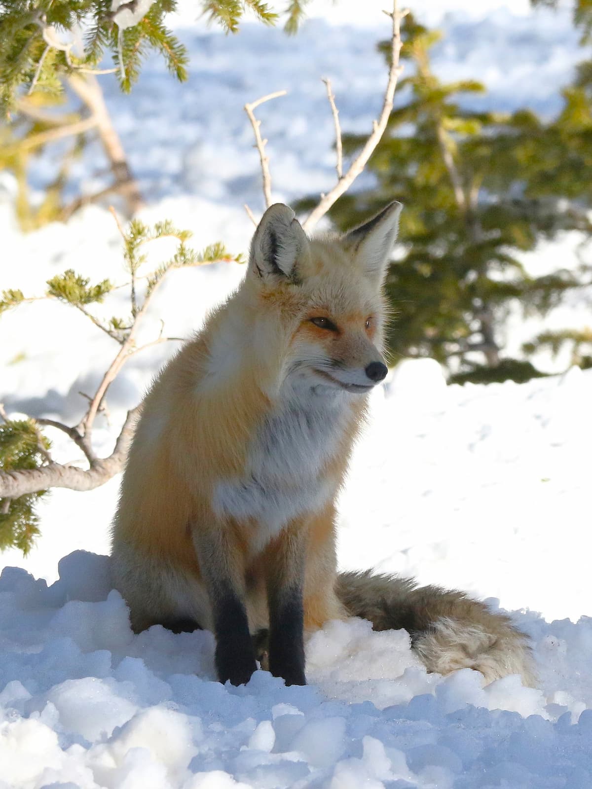 A Red Fox rests between winter hunting bouts