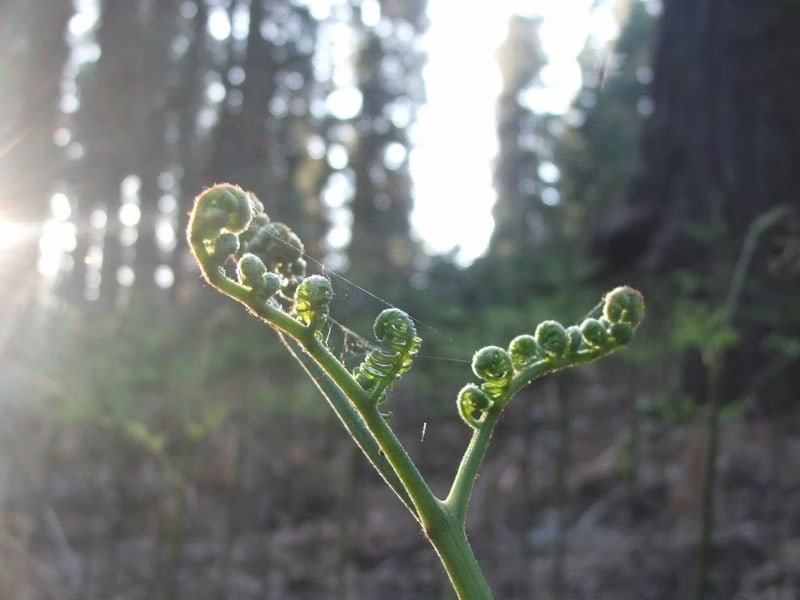 A common bracken fern (Pteridium aquilinum) fiddlehead prepares to unravel its fronds