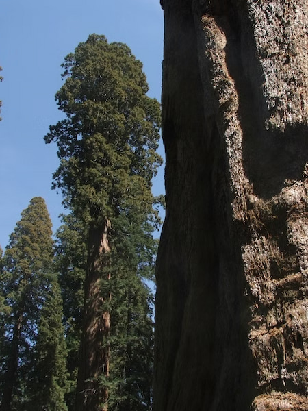 Giant Sequoia trees in the National Park. Standing in a shaded grove