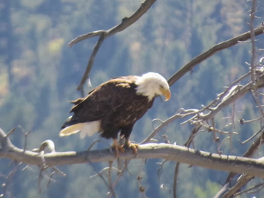 We spotted a mature adult bald eagle (Haileatus leucocephalus) in a cottonwood (Populus deltoides) along the Lamar River