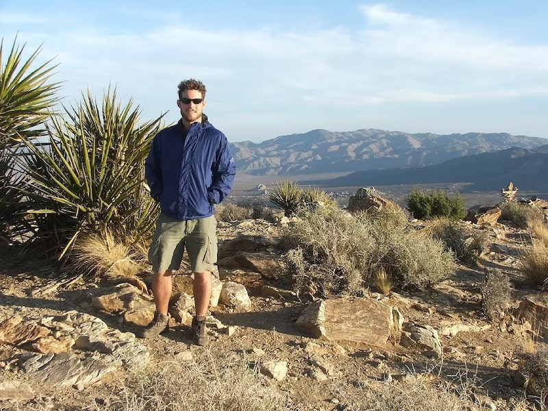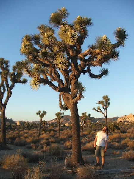 Standing on top of Ryan Mountain with several Mojave yuccas (Yucca schidigera) behind me in Joshua Tree National Park
